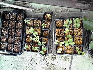 いつもは本葉2~3まいで移し替えますが、ヤサシイエンゲイに「双葉が完全に開いて、本葉が出る前に移し替える」というふうに書いてあったので、今年はそれを試してみたいと思います。