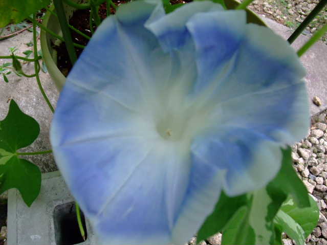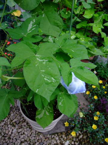 白勝絞り青ですが、上の方の葉がヘンです。