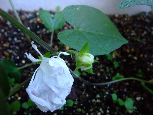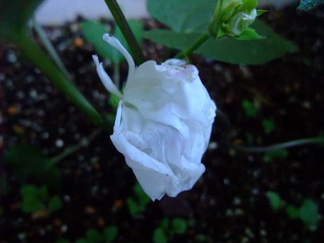 花も真っ白っていうより、若干ピンクとか紫が混じってる?もしかしたらちゃんと咲くようになるかと思うけど、