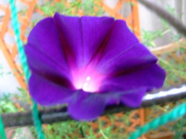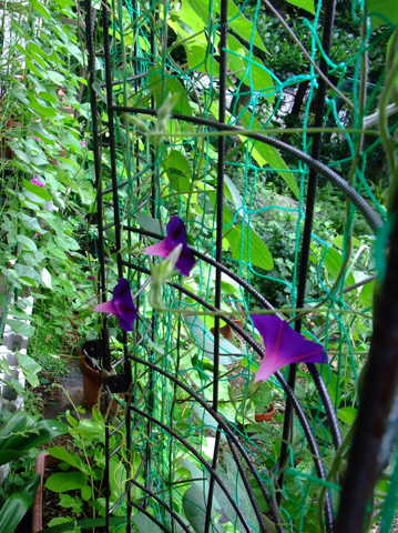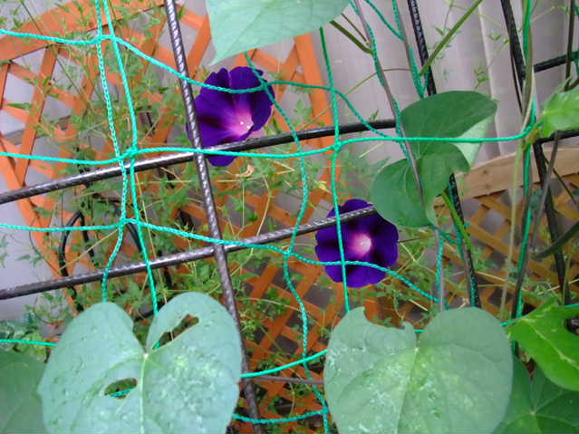 朝顔、紫も涼しげですね。