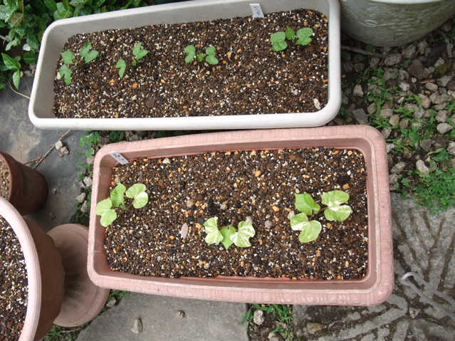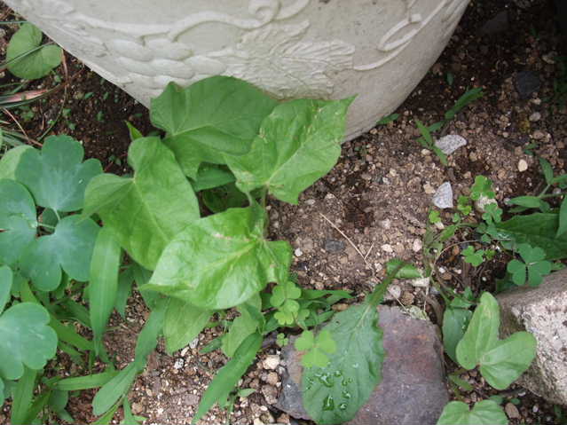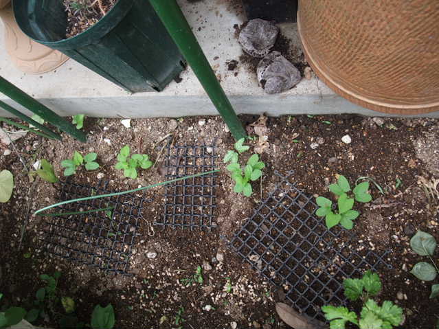 また隣に置いてあった鉢物から伸びてきて定植しちゃったり、なんです。(^^;)
