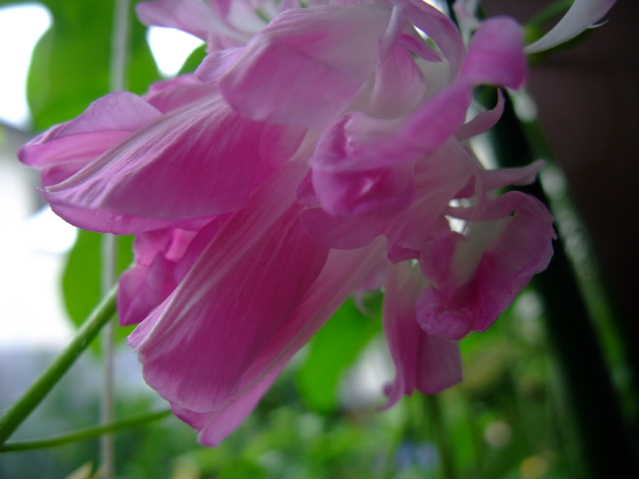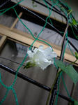 絡まって大変なのでとりあえずつるの先を雨どいから下ろしました。