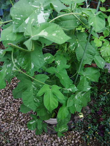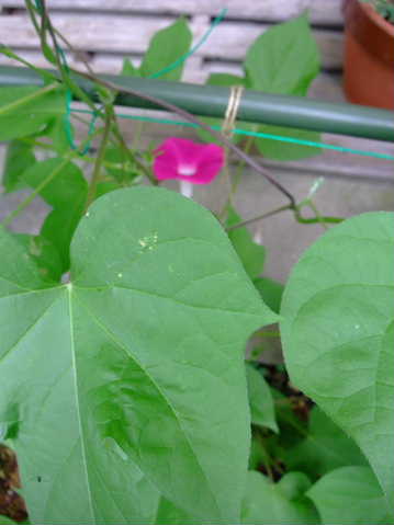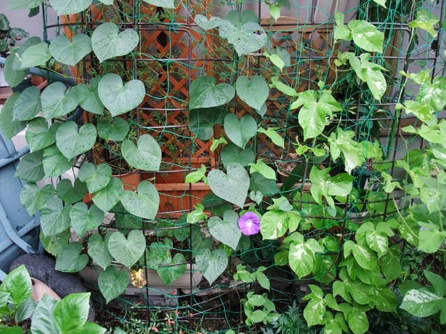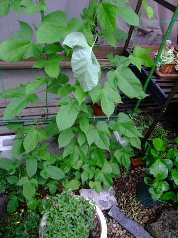 もしかして、別の株のつるが、この鉢に巻き付いたのかな。