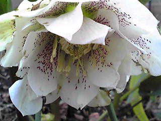 昨年地植えにした八重咲のヘルボが初めて咲きました。