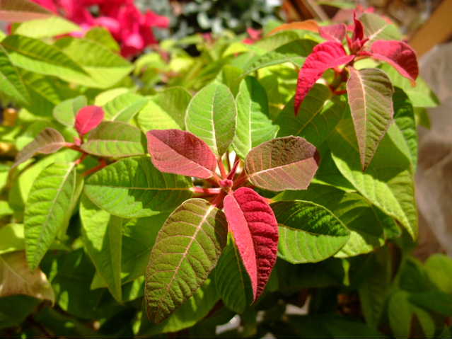 ポインセチアは寒さで葉の落下が始まっています。