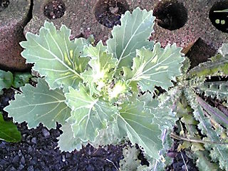 上のブロックの向こう側に一時植えていた葉牡丹の種みたい。
