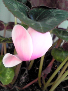 ほかにもシクラメンの鉢がおいてありましたけど、この鉢だけ咲いたんですよ。