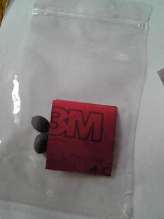 蓮たねものがたり。 種が2つとサンドペーパー。