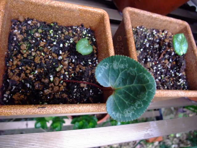 種から育っているシクラメン。