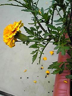 これは、プランターに1つだけ植えていた今朝のマリーゴールドの様子。