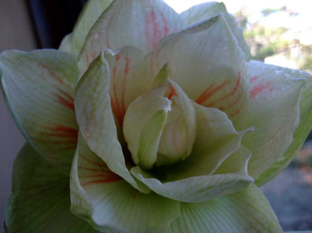 と題名を見ながら。アマリリスの名前なのですね。アマリリスもいろいろな種類があるのですね。赤い豪華なイメージでしたが、これは可憐ですね。