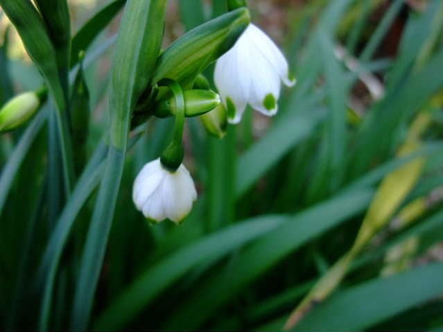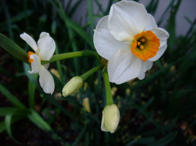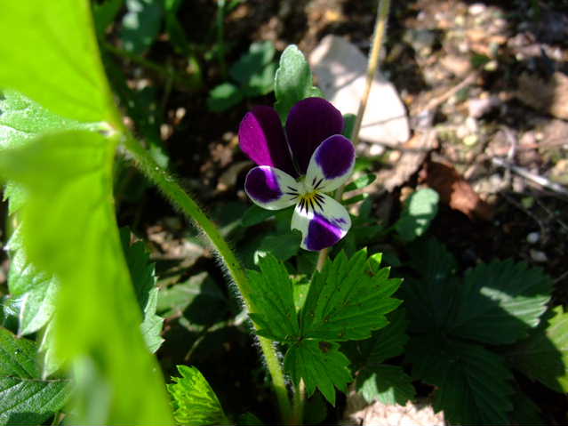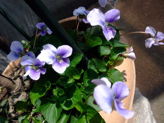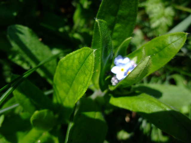 零れ種のワスレナグサとウサギ耳のビオラ。