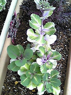 お正月用?の葉牡丹の寄せ植えをばらして植え替えてみましたけど、