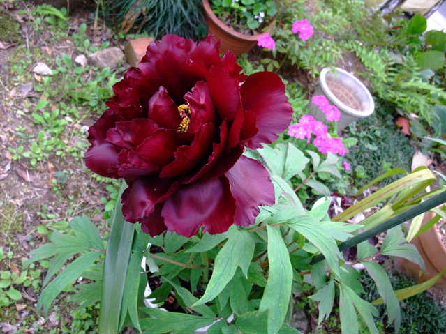 牡丹、黒光司(こっこうつかさ)が咲きました。