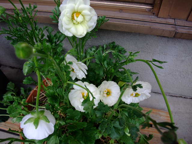 球根から育てたラナンキュラスがやっと咲き始めました。