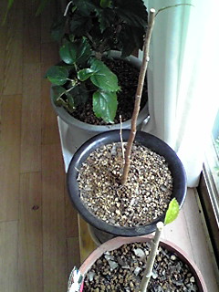 左側2つが、ハイビスカスをブッツリ切った枝。