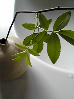 折れちゃったので水に挿しておいたら葉が開いてきました。