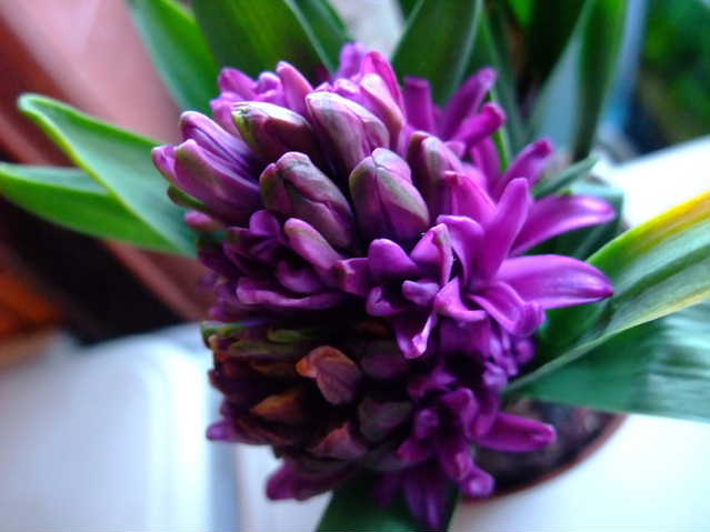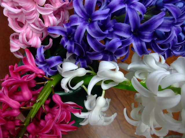 倒れたヒヤシンス、摘んで来たら雨になった。