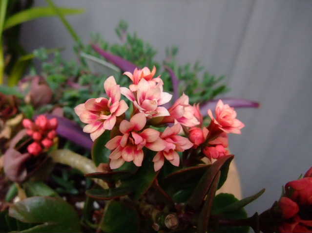 零れ種のワスレナグサとウサギ耳のビオラ。