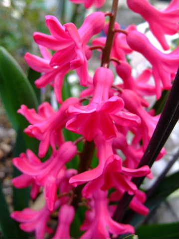 ヒヤシンスの濃いピンクが咲きました。