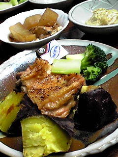 チキン、ブロッコリー、手前にある大きな塊はやきいも!