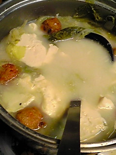 白菜と、エビ団子と豆腐のクリーム味の鍋。