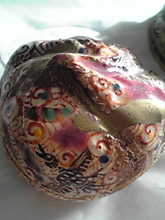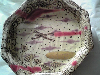 難しい名前(?)と相まって グルグルの模様が沢山あって難解な絵柄ばかりなのかと思いきや、蛙の皿はなんだか物語の一シーンのようで、生き生きとしていると言うよりは時間的な流れを感じますね。