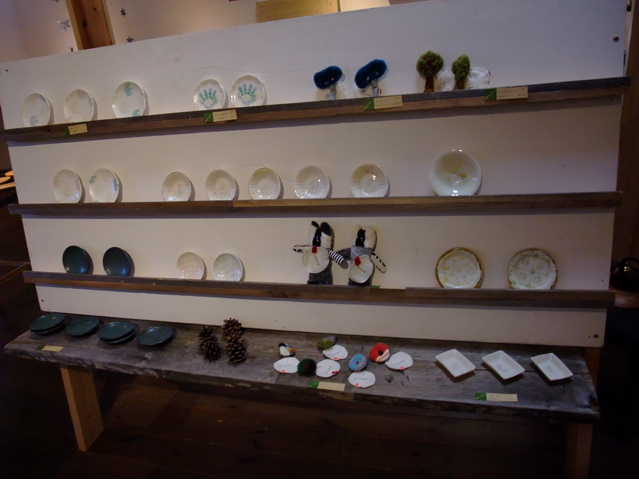 今は「まめモノ」~豆ゆのみ展で、豆湯呑を含め、たくさんのお皿がありました。