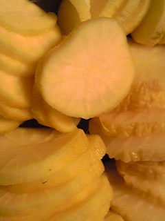 ご近所さんに、ご自分で漬けたというたくあんを1本いただきました。