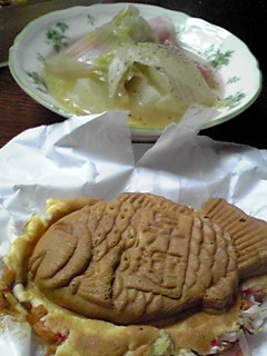 たい焼きの皮でお好み焼きを挟んだようにしか見えないです~