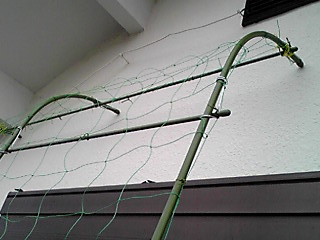 支柱だけだと、朝顔の蔓に力がないと絡まないんじゃないですかね?