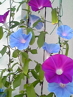 >一番下の写真の水色の朝顔の色、すごく良いですね