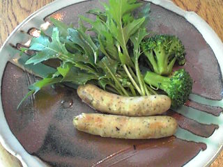 ブロッコリーとレモンとハーブのソーセージと盛り合わせていただきまーす。
