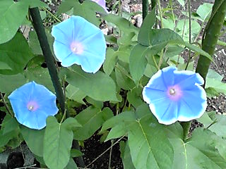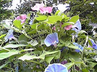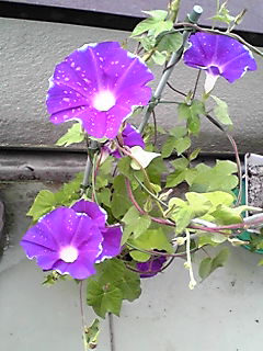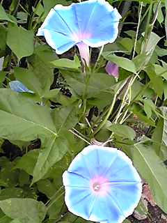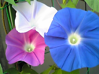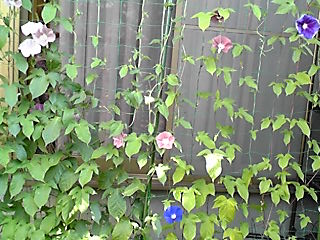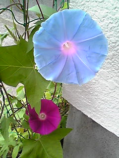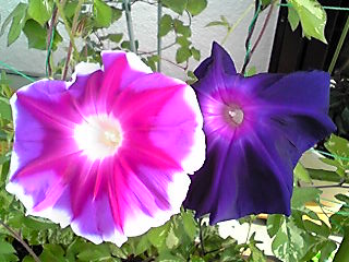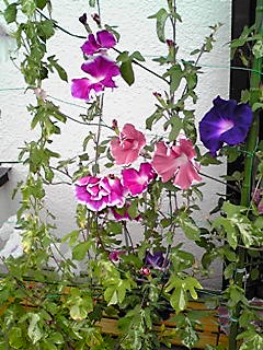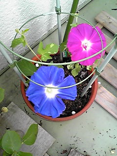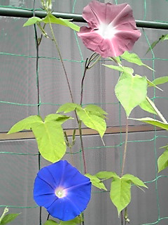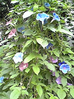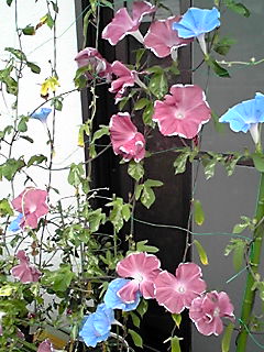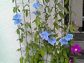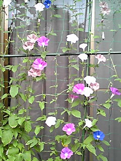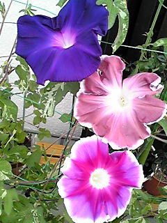 アーリーコールミックスとロイヤルブルー(鯨もん。さん命名)の朝顔。