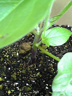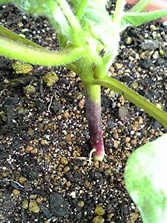 他の苗より、根元の色が濃い。