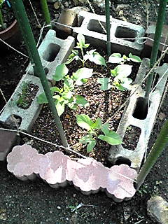 ここには、暁の空とピンクの絞りの苗のつもりだったのです。