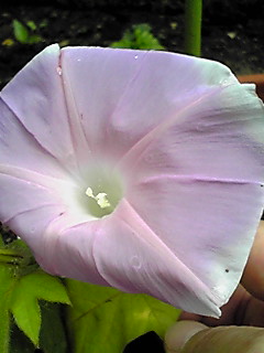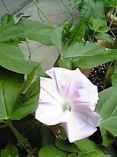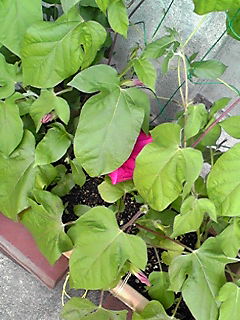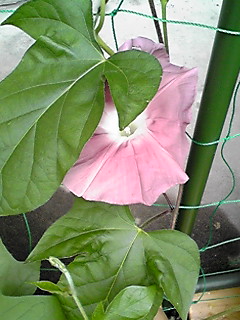 この朝顔は15センチ?くらいしかない苗のてっぺんに咲いております。(^^;)