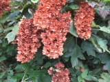 カシワバアジサイは早くも茶色。