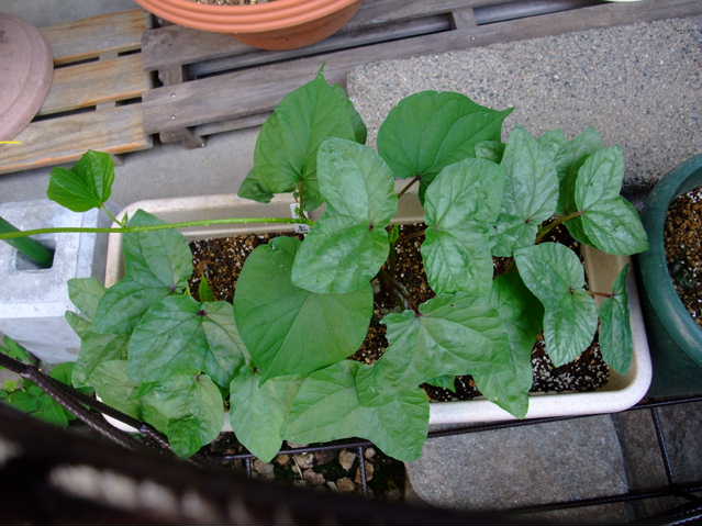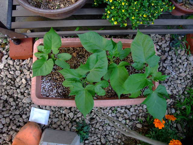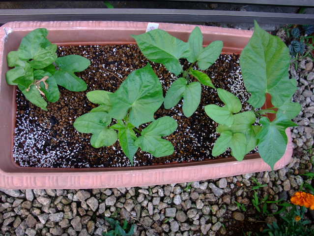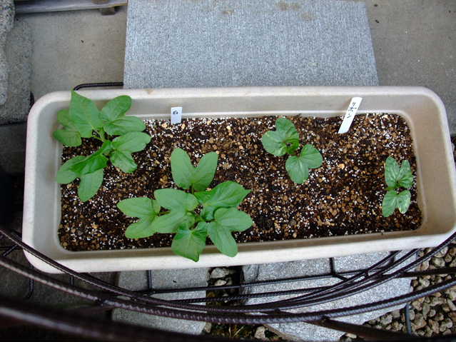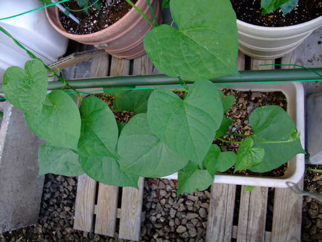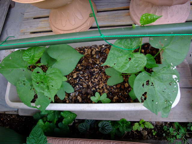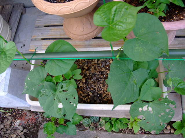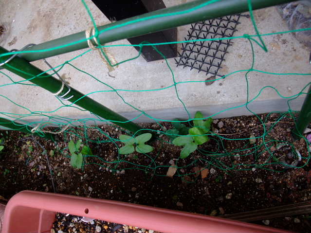すでに定植してある朝顔・夕顔。