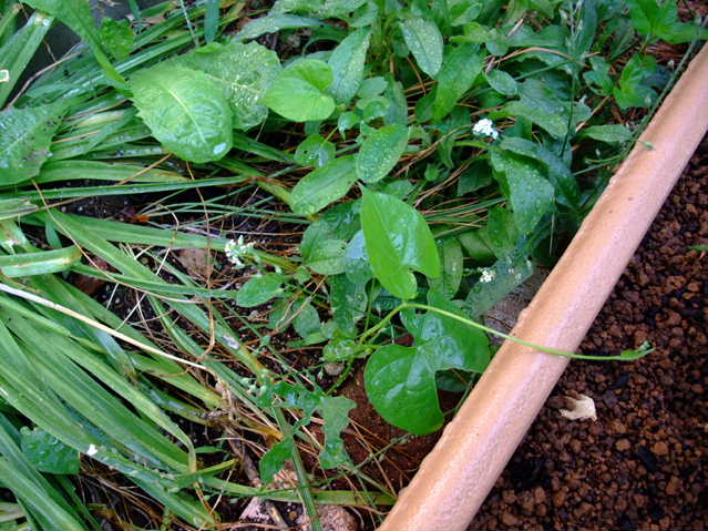 こちらは地面にいろいろ植えてあるので、