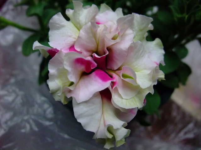 のぞいた地場野菜売り場で見つけたペチュニア。