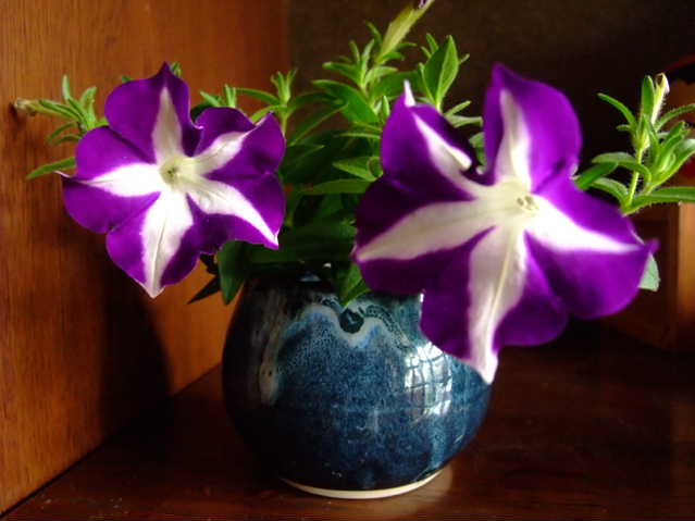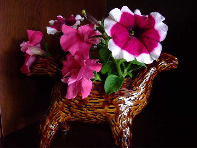 切り戻しをしたペチュニアを生けてあります。