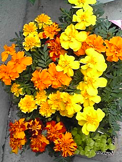 仕事から帰って、やっとマリーゴールドを12株植えつけ。
