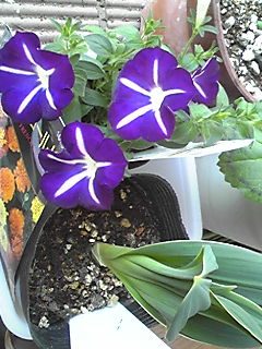 植えつける前にポットのまま咲いてしまったペチュニア。