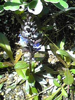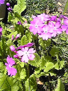 サクラソウ。宿根草で毎年咲いてくれています。隣はアジュガ。