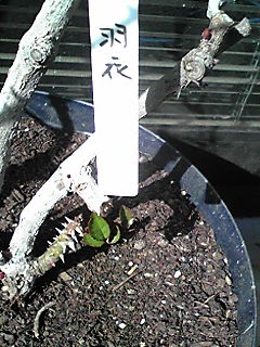 薔薇の芽吹き1号は鉢上げした羽衣!
