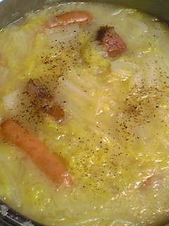 今日は、白菜とベーコン・ウインナーソーセージのクリーム煮。