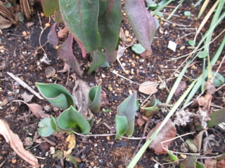 チューリップ、やっと芽が出てきました。
