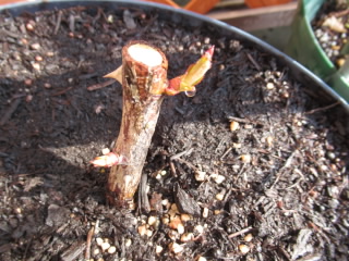消毒していないのに、薔薇の芽吹きが始まっていて、
