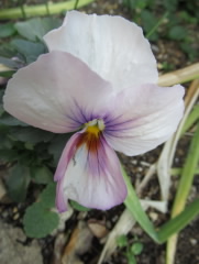 寒い我が庭ですが、地植えのパンジーもやっと花が咲いてきました。